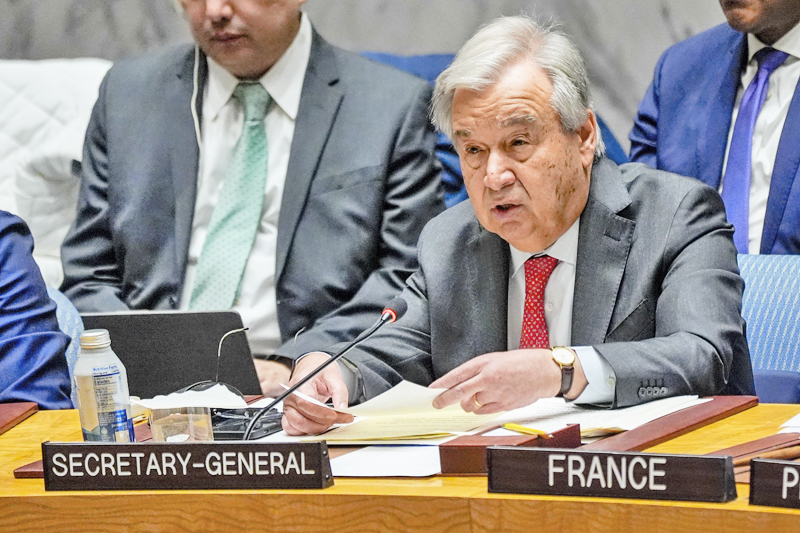Setiausaha Agung, Antonio Guterres menggesa Majlis Keselamatan PBB untuk menangani kesan kekurangan makanan dan peningkatan suhu terhadap keamanan dan keselamatan antarabangsa, pandangan yang digemari oleh banyak negara tetapi bukan oleh Rusia.