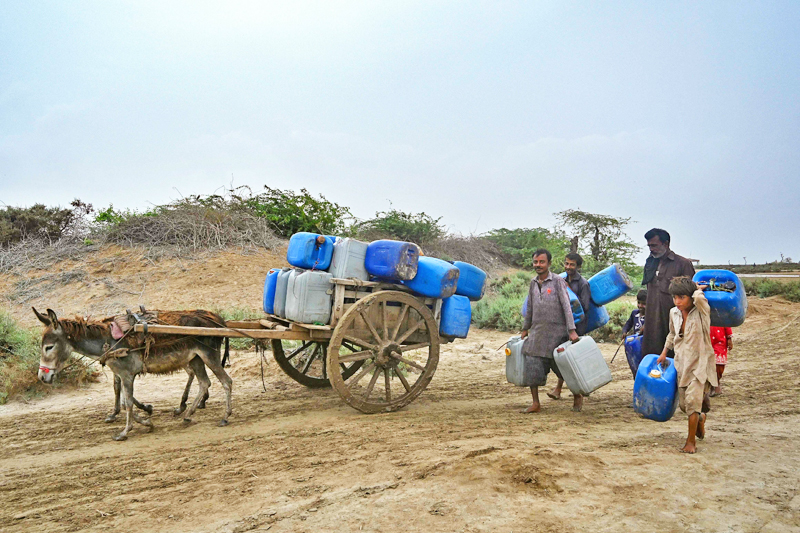 Bot membawa masuk air yang boleh diminum dari kawasan jauh dan penduduk kampung membawanya pulang menggunakan keldai.