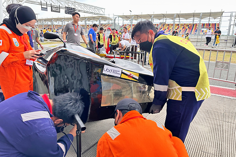 Sementara itu, pemandu utama kenderaan, Dayang Amal Bazilah binti Karim berkata, “Sebelum turun ke litar, perasaan kami bercampur baur dan gelisah kerana ia merupakan kali pertama kami menguji kereta rekaan kami.