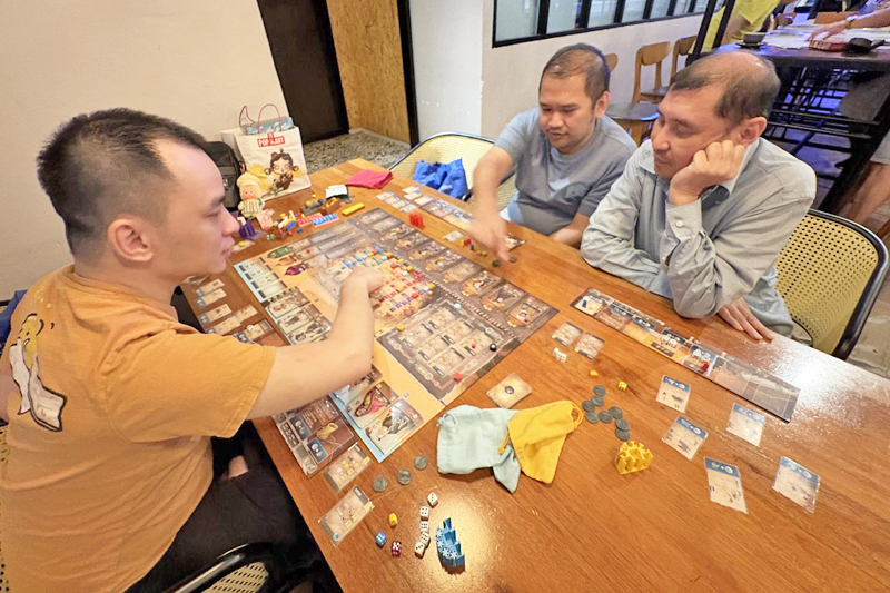 Cheng – dengan permainan kegemarannya termasuk Sheriff of Nottingham, Night of the Ninja dan Ready Set Bet – menganjurkan sesi mingguan di mana pemain tetap dan pendatang baru berkumpul di sekeliling meja yang disusun dengan permainan papan tajuk tempatan dan antarabangsa.