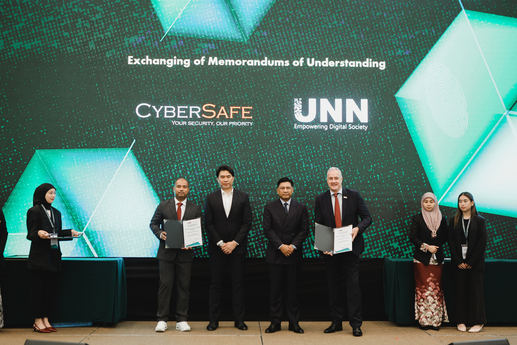 Majlis juga menyaksikan perasmian perjanjian yang dimeterai antara Cybersafe, Singapura dan Unified National Networks Sdn Bhd (UNN) yang diwakili oleh Ketua Pegawai Eksekutif Negara Cybersafe, Mohammed Eisa bin Haji Mohammad dan Ketua Pegawai Digital UNN, Heiko Trost.