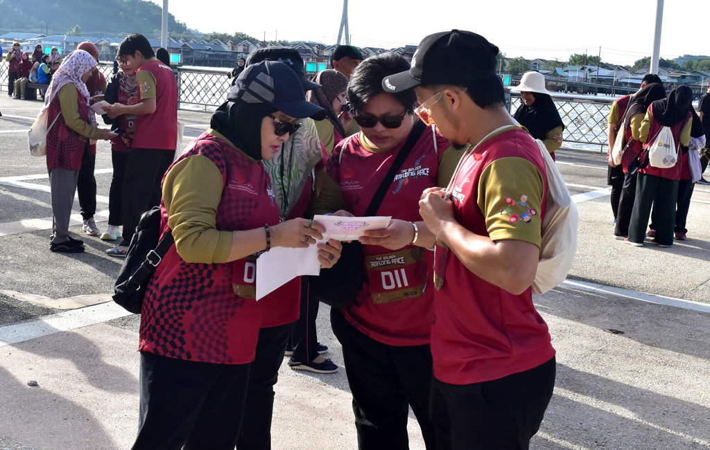 BANDAR SERI BEGAWAN, 19 OKT – Sebanyak 13 kumpulan beraksi dalam pertandingan rekreasi dan cabaran berpasukan, The Golden Amazing Race bersempena dengan Sambutan Hari Antarabangsa Warga Emas 2025, yang berlangsung di Hab Tenaga Brunei, Dermaga Diraja dan sekitar kawasan Bandar Seri Begawan, hari ini.