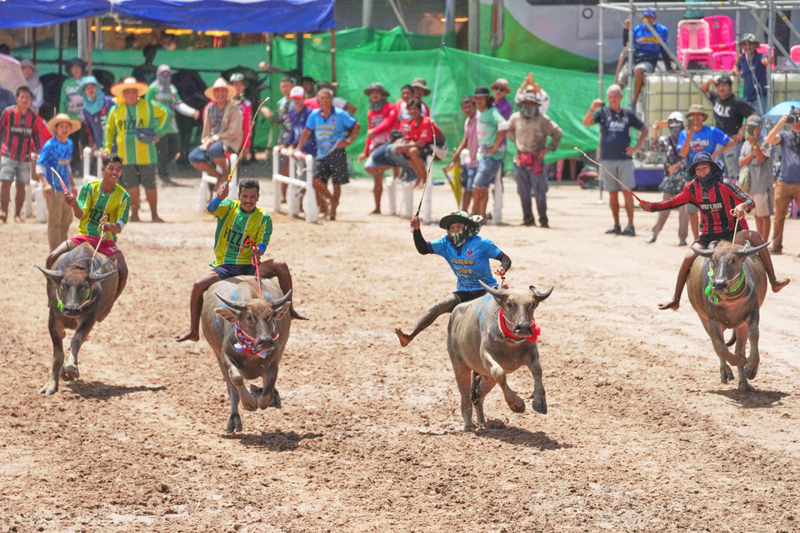 Kerbau menjadi tarikan utama di festival di Chonburi, yang dilancar dengan perarakan yang menampilkan pelajar mempersembahkan tarian tradisional Thai. Beberapa ekor kerbau memakai lingkaran bunga ketika mereka menarik kereta kayu tradisional dengan roda setinggi 2 meter membawa tuannya dan kaum wanita dalam pakaian tradisional Thai.