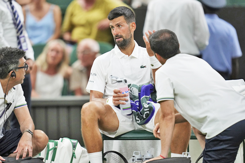 Djokovic memerlukan masa rehat ketika ketinggalan 2-1 dalam set ketiga di gelanggang utama dan dilihat sekali lagi menerima rawatan pada set tersebut.