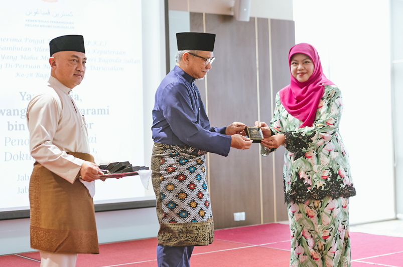 BANDAR SERI BEGAWAN, 1 JULAI – Seramai 134 orang penerima Pingat Kerja Lama (PKL) diraikan dalam Majlis Penyempurnaan Pengurniaan Pingat-pingat Kehormatan Negara Brunei Darussalam, PKL sempena Hari Keputeraan Kebawah Duli Yang Maha Mulia Paduka Seri Baginda Sultan Haji Hassanal Bolkiah Mu’izzaddin Waddaulah, Sultan dan Yang Di-Pertuan Negara Brunei Darussalam ke-78 bagi pegawai-pegawai dan kakitangan Kementerian Pembangunan dan jabatan-jabatan di bawahnya yang berlangsung di Dewan Mawaddah, Setia Point, Berakas, hari ini.