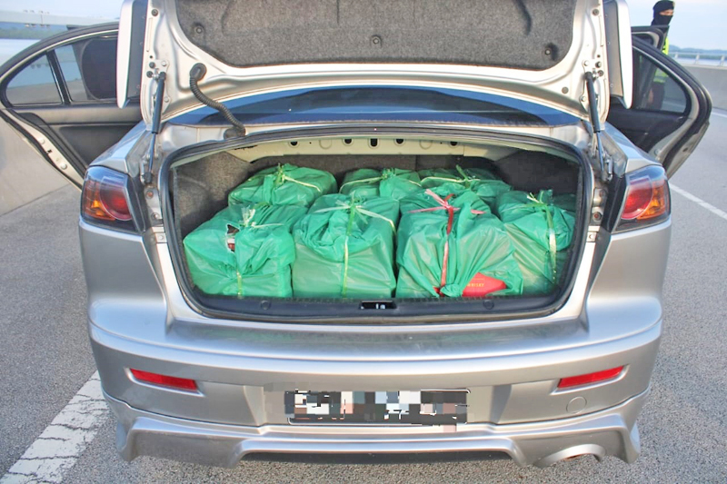 Kenderaan tersebut berjaya ditahan bersama dua orang suspek, iaitu seorang lelaki dan seorang wanita warganegara tempatan berumur 24 dan 38 tahun.