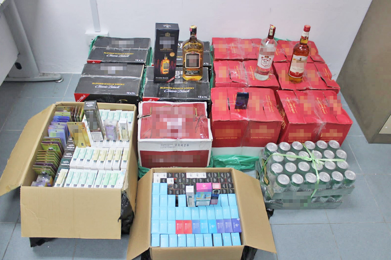 Pemeriksaan lanjut menemukan beberapa kotak yang disahkan mengandungi 132 botol dan 48 tin minuman keras serta 276 unit vape pelbagai jenama.