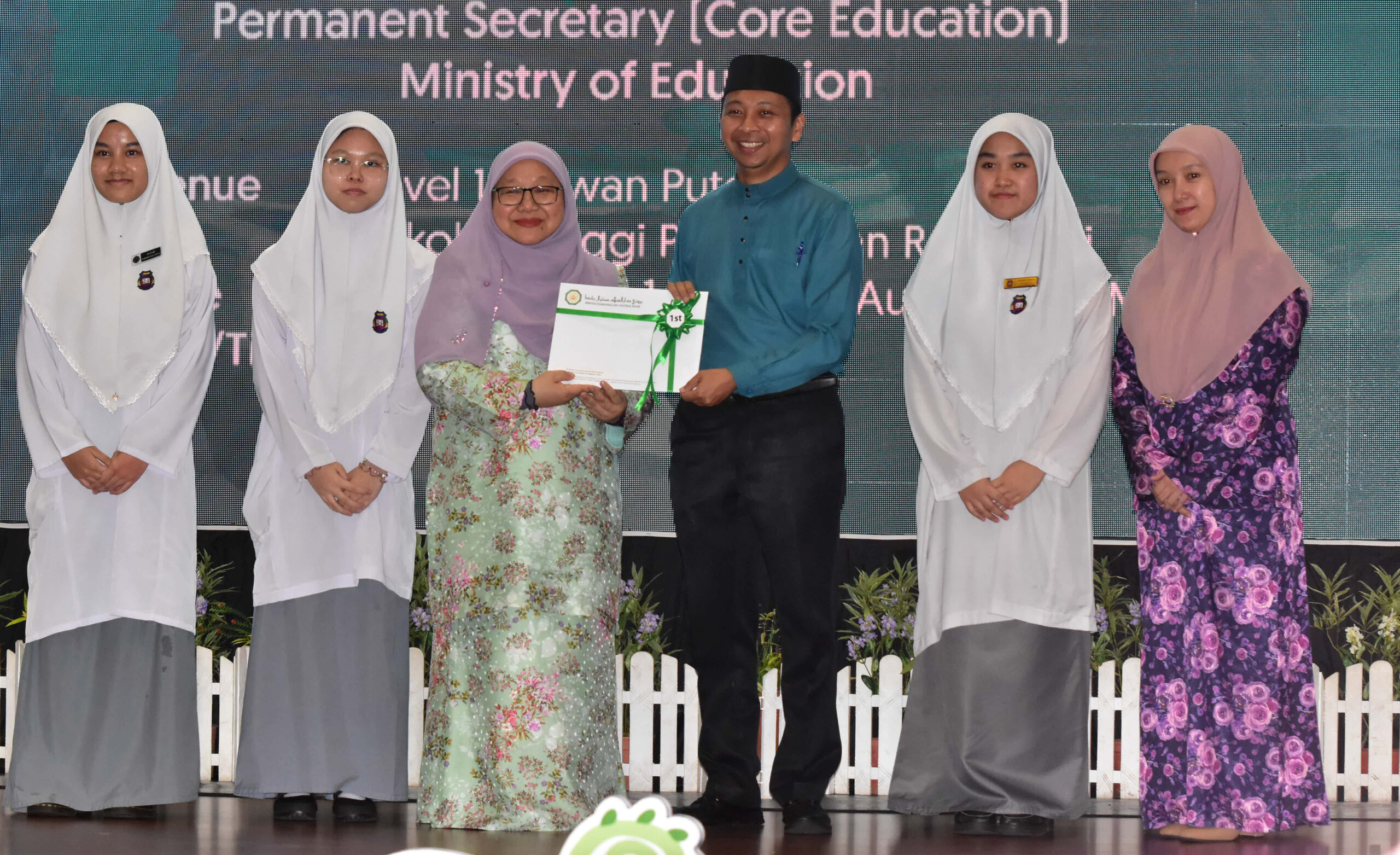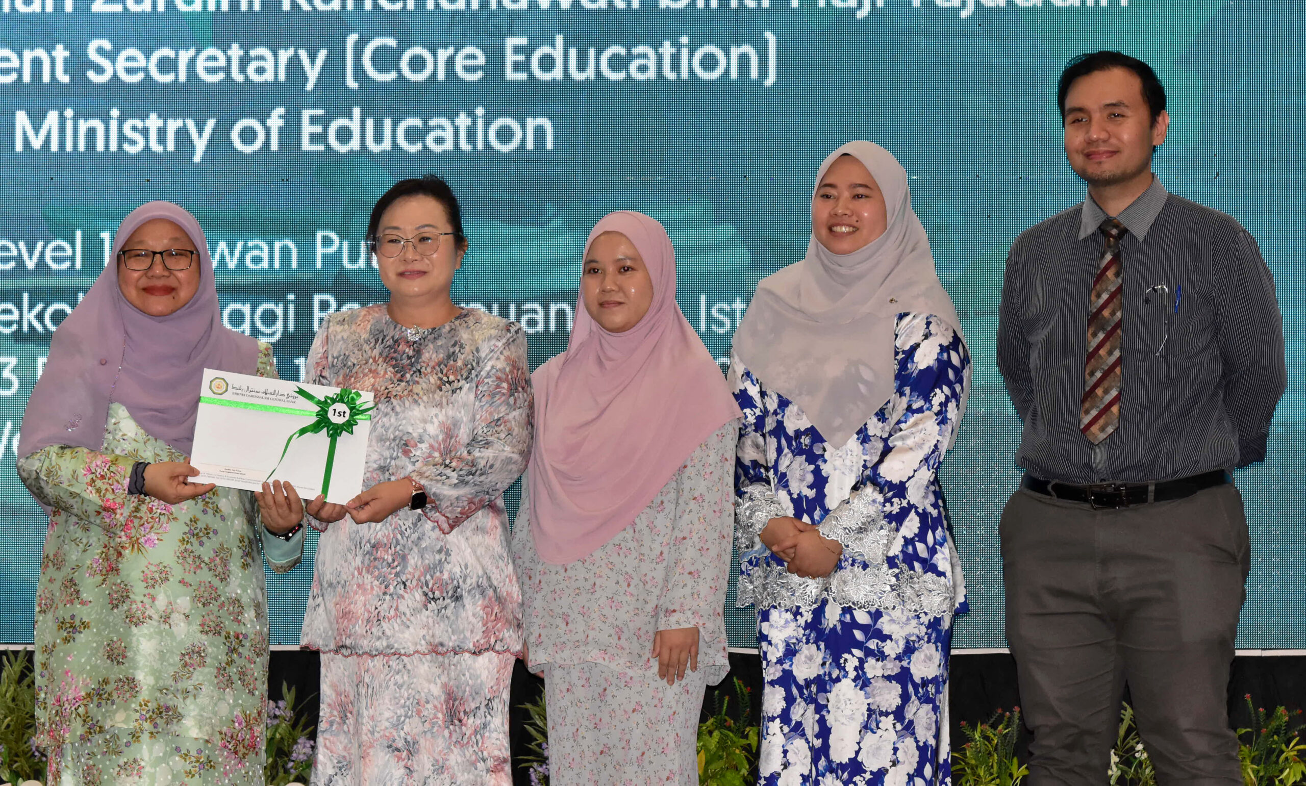 Hadir selaku tetamu kehormat dan menyempurnakan penyampaian hadiah kepada para pemenang ialah Setiausaha Tetap (Pendidikan Teras), Kementerian Pendidikan, Dr Shamsiah Zuraini Kanchanawati binti Haji Tajuddin.