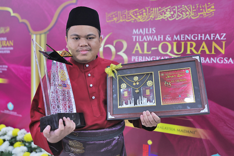 KUALA LUMPUR, 25 OGOS – Qari Malaysia, Muhammad Qayyim Nizar Sarimi muncul juara bagi kategori lelaki pada Majlis Tilawah dan Menghafaz Al-Quran Peringkat Antarabangsa (MTHQA) ke-63 dengan catatan markah 94.96 peratus.