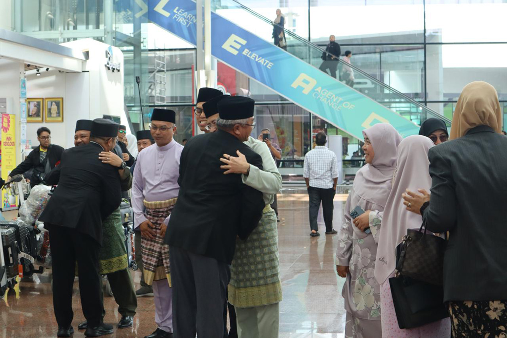 Hadir mengalu-alukan kepulangan rombongan berkenaan ialah Setiausaha Tetap Kementerian Hal Ehwal Agama (KHEU), Haji Mohammad Rosli bin Haji Ibrahim; Timbalan Setiausaha Tetap (Dasar dan Keugamaan) KHEU, Haji Shamshol bin Haji Omar, serta pegawai-pegawai kanan kementerian berkenaan.