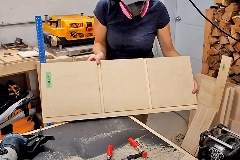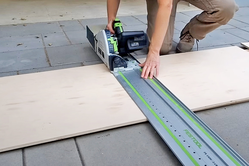 Dua keping papan lapis berketebalan ½ inci akan dipotongkan untuk dijadikan pintu rak.