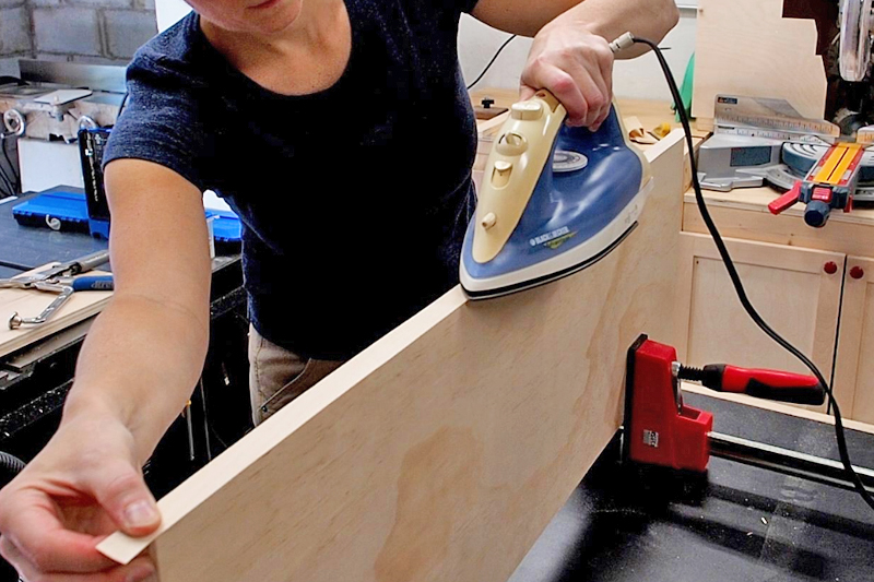 Sebahagian pereka tidak sukakan bahagian sisi papan lapis yang jelas terlihat kepingan kayu yang dicantumkan bersama yang boleh menjejaskan hasil akhir rekaan, masalah tersebut boleh diselesaikan dengan menutupinya. Menggunakan penyelesaian mudah dan cepat, awda boleh melekatkan iron-on edge berbanding dengan hanya menggunakan seterika. (Gambar 6)