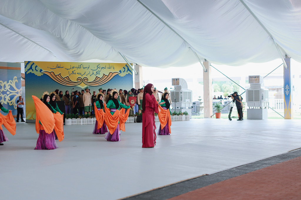 Sehubungan dengan itu, bagi memastikan kelancaran dan memantau persediaan awal serta persiapan latihan yang dilaksanakan, raptai penuh bagi majlis ramah mesra berkenaan dan persembahan khas yang membawa tema, ‘Raja Penyayang Julangan Rakyat’, telah diadakan di Taman Haji Sir Muda Omar ‘Ali Saifuddien, Bandar Seri Begawan, hari ini.