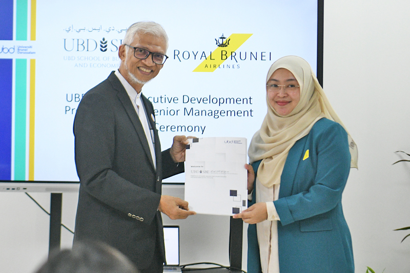 BANDAR SERI BEGAWAN, 13 OKT – Program Pembangunan Eksekutif Sekolah Perniagaan dan Ekonomi Universiti Brunei Darussalam (UBD SBE) – Syarikat Penerbangan Diraja Brunei (RB) telah berlangsung selama 10 hari mulai 18 Julai berakhir dengan majlis penutup pada 10 Oktober lalu.