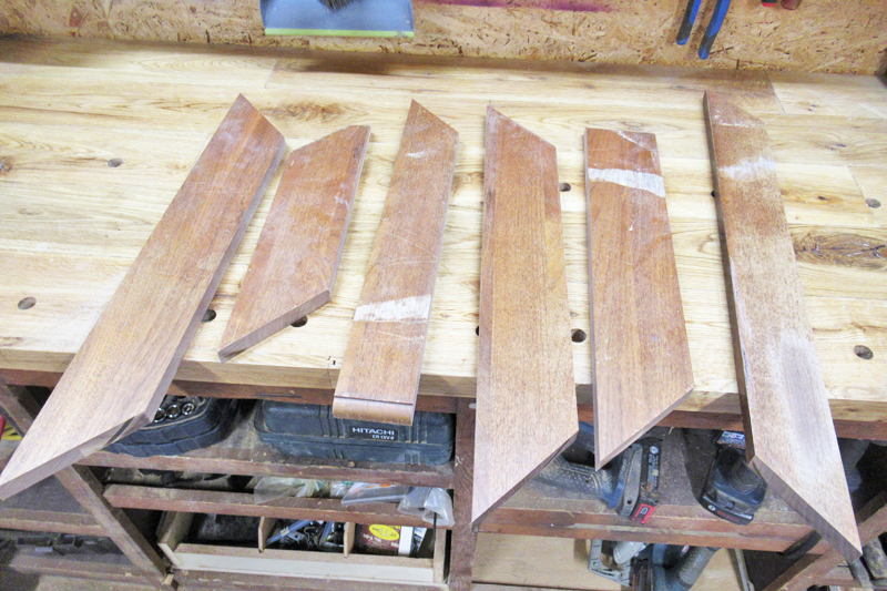 Potong permukaan meja berukuran 14″ x 22″. Kaki tegak dipotong sepanjang 24″ dengan kelebaran 4″. Empat batang penyokong dipotong 13″ dengan kelebaran 3″. Batang silang pula sepanjang 19″ dengan kelebaran 2 ½”.