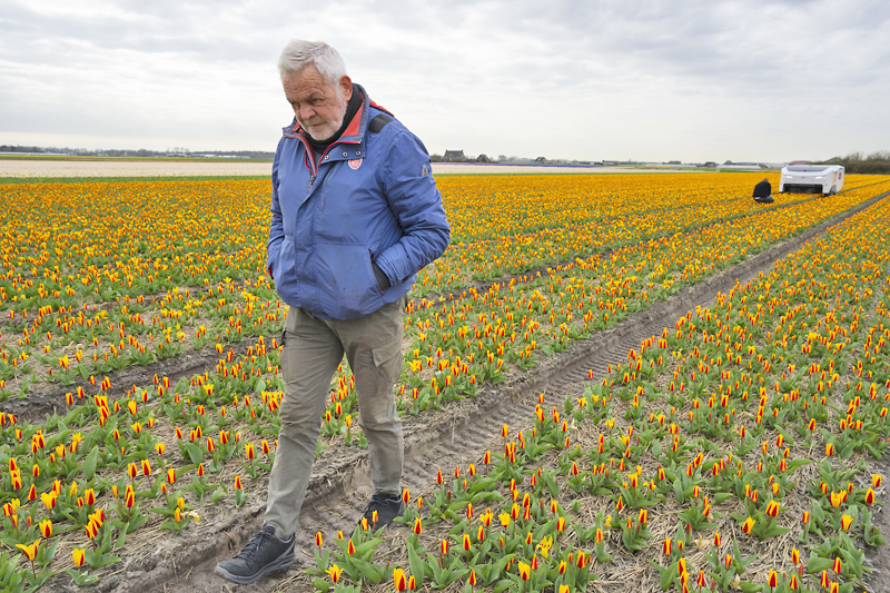 NOORDWIJKERHOUT, BELANDA – Theo bekerja pada hari bekerja, hujung minggu dan malam, tidak pernah merungut tentang sakit tulang belakang walaupun bekerja untuk waktu lama yang mana, bagi pekerja ladang biasa, merupakan kerja menjerihkan memeriksa ladang tulip Belanda untuk bunga yang sakit.