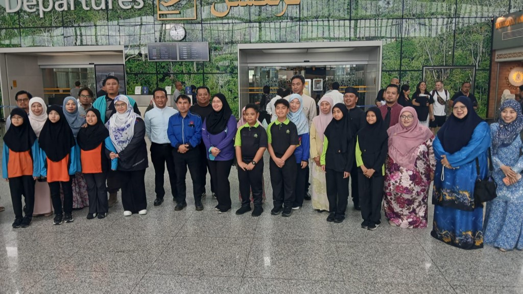 Turut hadir di Lapangan Terbang Antarabangsa Brunei ialah pegawai-pegawai dari JSS serta ibu bapa dan ahli keluarga pelajar.