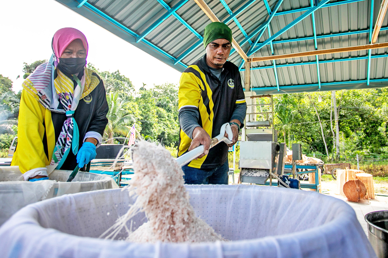 Bagi tidak mensia-siakan tumbuhan warisan anugerah alam itu, Jawatankuasa Pembangunan dan Keselamatan Kampung (JPKK) Batu 14, melalui Program Sejahtera Komuniti MADANI, mengambil inisiatif menjalankan perusahaan sagu rumbia secara komersial.