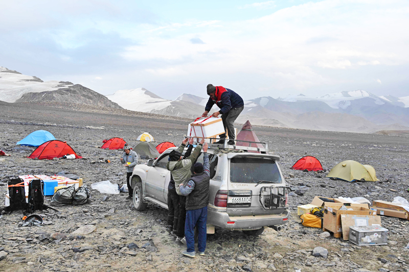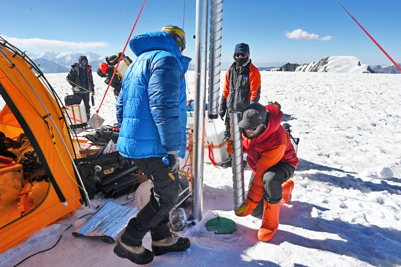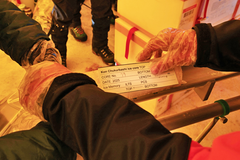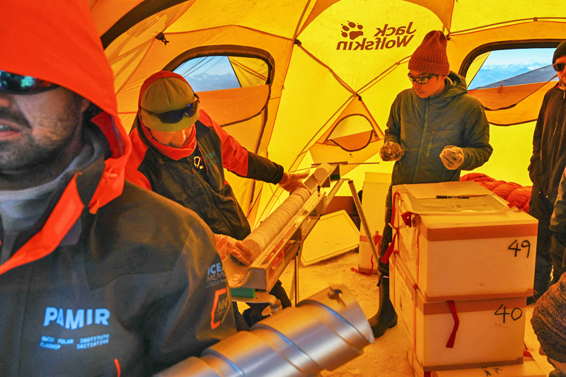 Berkhemah selama seminggu di puncak gunung, dalam suhu beku dan meskipun ribut salji sepanjang hari, saintis dari Switzerland, Jepun, Amerika Syarikat dan Tajikistan menggerudi glasier untuk mengekstrak dua silinder ais sepanjang 105 meter, dalam bahagian.