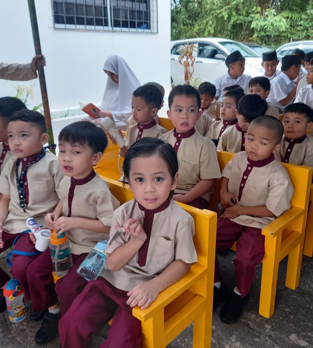 Majlis sambutan dimulakan dengan nyanyian lagu kebangsaan, diikuti dengan bacaan Surah Al-Fatihah dan doa yang dipimpin oleh Awang Ahmad Mu’adz bin Dziky Mulyaddey, murid Tahun 5.