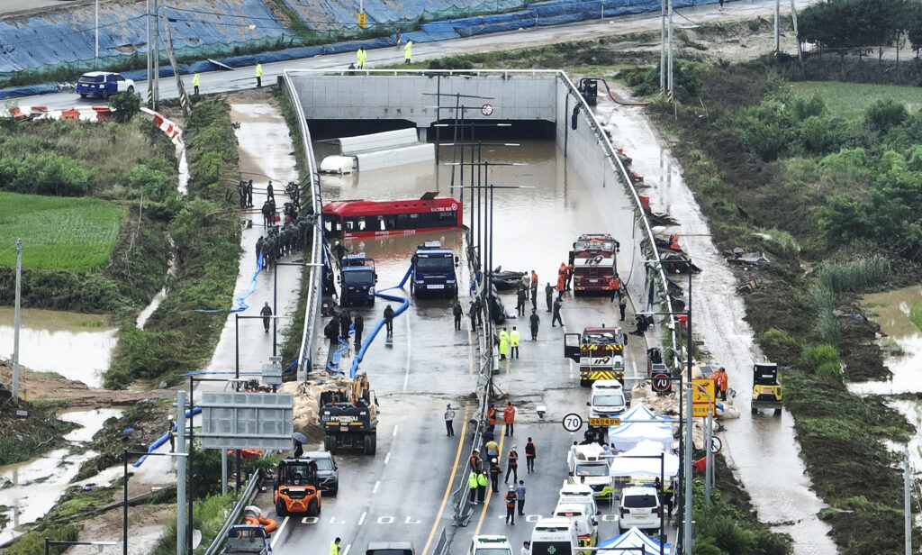 Terowong itu ditenggelami air pada pagi kelmarin selepas air banjir melanda terlalu cepat untuk orang ramai di dalam terowong untuk menyelamatkan diri, menurut agensi berita Yonhap.