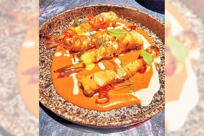 Seterusnya, daripada pinggan sederhana yang ditawarkan, cubalah pes udang relish dengan thai crispy roll.