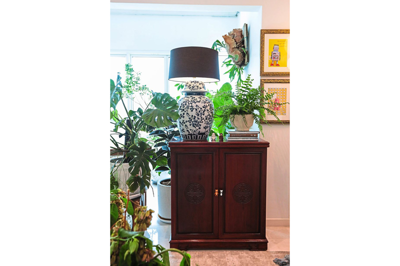 Dinesh menjelaskan, “Saya sengaja memastikan dinding berwarna putih supaya kami boleh bermain dengan tekstur, perabot dan karya seni yang berbeza daripada kepingan yang telah kami miliki dan yang baharu ditambahkan ke dalam rumah.”