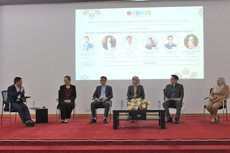 BANDAR SERI BEGAWAN, 29 OKT – Dengan matlamat untuk memperkukuh transformasi digital dalam sektor pelancongan Brunei melalui perkongsian ilmu, dialog terbuka dan jaringan strategik antara industri dan penyedia teknologi, Kementerian Sumber-sumber Utama dan Pelancongan (KSSUP) melalui Jabatan Kemajuan Pelancongan menganjurkan Sesi Jaringan Perniagaan ke Perniagaan bertemakan Pendigitalan yang berlangsung di Dewan Setia Pahlawan, KSSUP, baru-baru ini.
