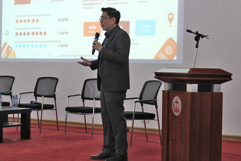 Sesi diteruskan dengan pembentangan oleh seorang pakar industri digital, Albert Hwong dari Dynamik Teknologies Sdn Bhd, yang mengongsikan mengenai landskap pendigitalan yang kian berkembang dalam sektor pelancongan.