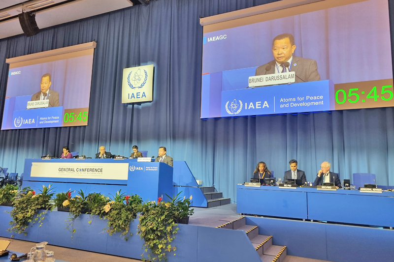 Komitmen itu diketengahkan oleh Ketua Pegawai Eksekutif Autoriti Kebangsaan Keselamatan, Kesihatan dan Alam Sekitar (SHENA), Haji Muhsin bin Haji Ahmad, selaku ketua delegasi Brunei dalam Kenyataan Negara semasa Perbahasan Umum Sesi Tetap ke-69 Persidangan Agung Agensi Tenaga Atom Antarabangsa (IAEA), yang berlangsung di Pusat Antarabangsa Vienna, Austria pada 15 hingga 19 September lalu.