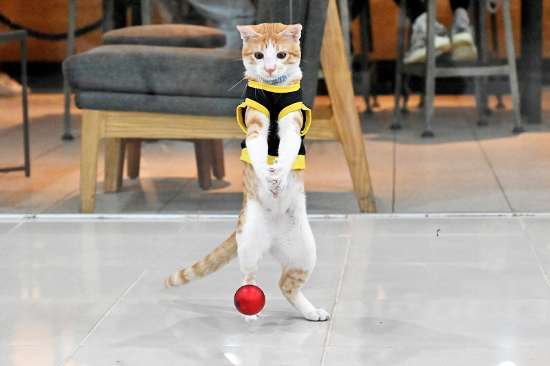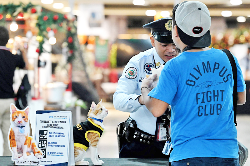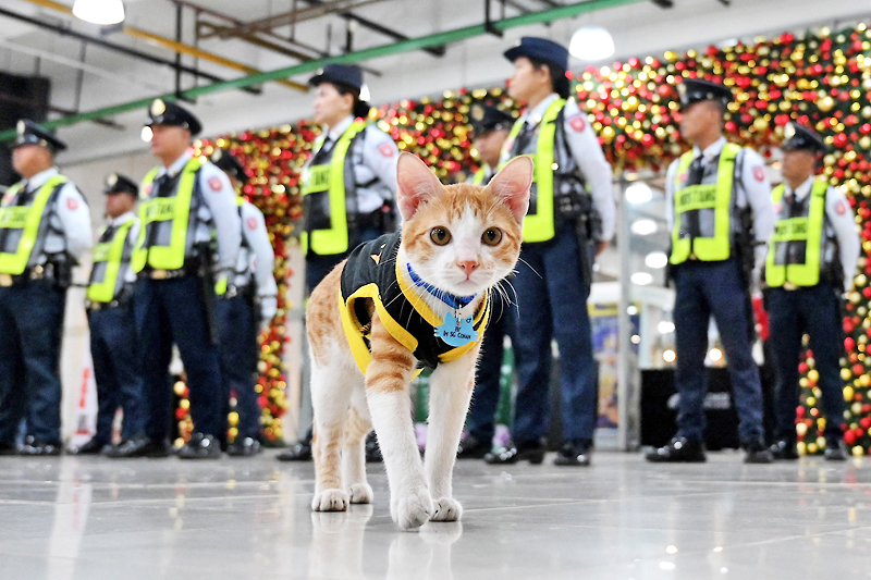 Conan, kucing terbiar berusia enam bulan, menyertai pasukan keselamatan Pusat Korporat Seluruh Dunia di ibu negara Manila beberapa bulan lalu.