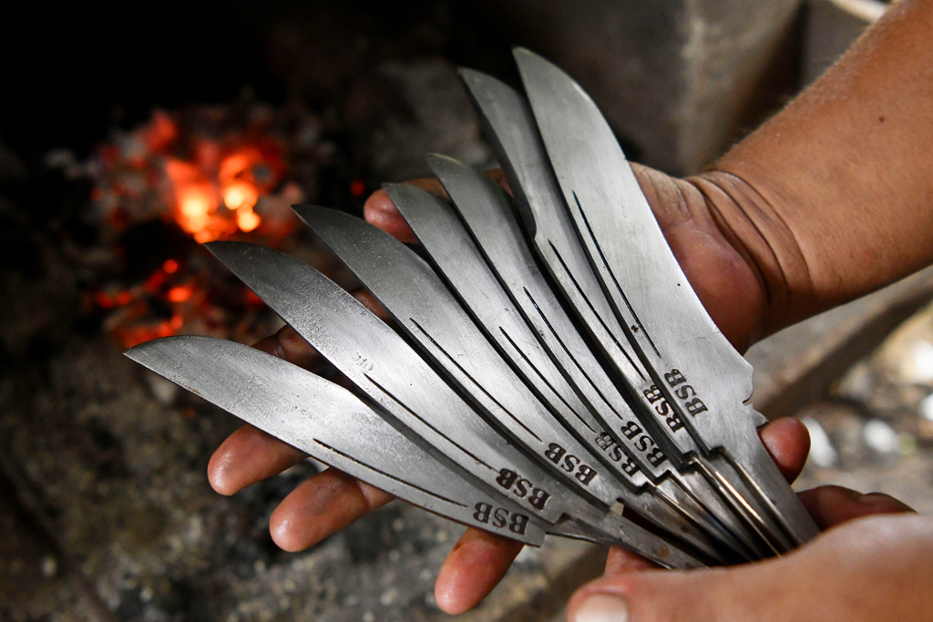 “Setiap hari saya memerlukan kira-kira 30 kilogram (kg) arang yang diperoleh dari pembekal tempatan untuk menyiapkan sekitar tiga hingga lima bilah pisau. Sekitar 200 gram besi pula diperlukan untuk menghasilkan sebilah pisau yang mana setiap pisau memerlukan masa sekitar dua hingga tiga jam untuk disiapkan.
