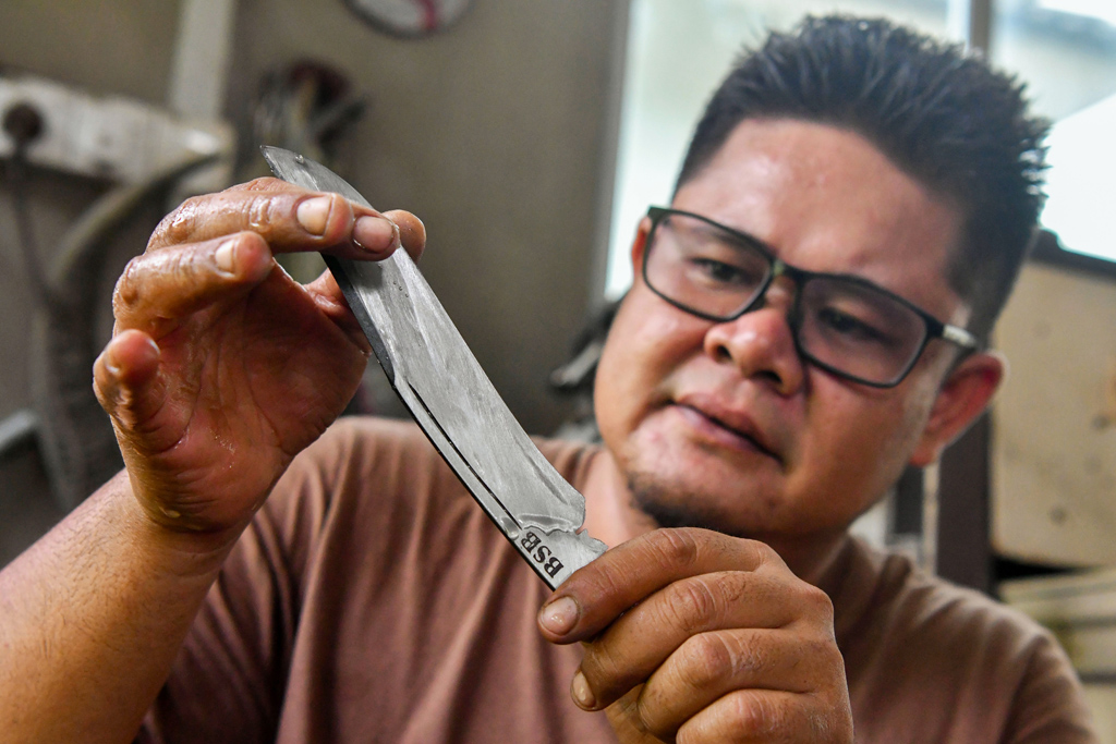 “Sebaik mendapat bentuk dikehendaki, alatan itu akan diasah menggunakan tiga jenis batu asahan dengan gred 80, 600 dan 1,200. Setiap gred mempunyai tahap asahan berbeza bagi menghasilkan ketajaman pisau,” kata pemilik Facebook Zull Bsb dan Tiktok Zullbsb Knifemaker yang sudah hampir 11 tahun berkecimpung dalam bidang ini. – Bernama