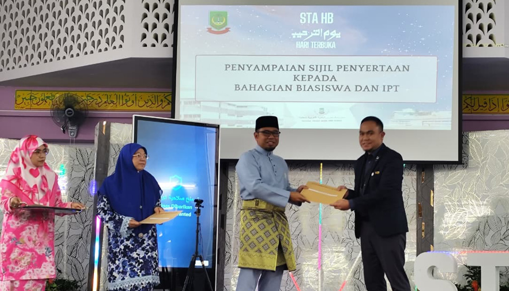 Hari Terbuka STA HB diisi dengan penyampaian Sijil Penyertaan kepada pihak-pihak yang mengambil bahagian dalam Program Hari Terbuka tersebut disempurnakan oleh tetamu kehormat majlis dan diteruskan dengan lawatan ke ruang-ruang pameran.