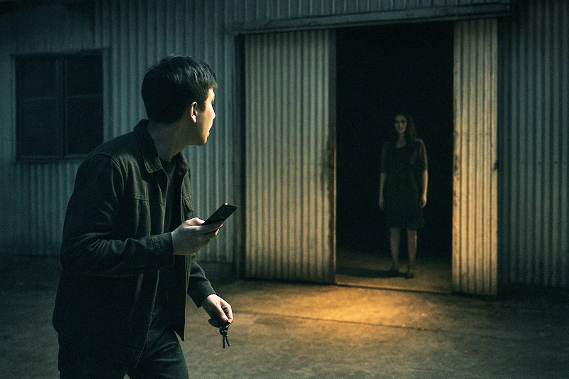Dengan berat hati, aku menapak ke pintu gudang. Kawasan sekeliling sunyi, hanya ditemani cahaya lampu jalan yang malap. Aku cuba beranikan diri, membuka pintu gudang. Bunyi engsel pintu berkeriut panjang, menambah rasa seram.