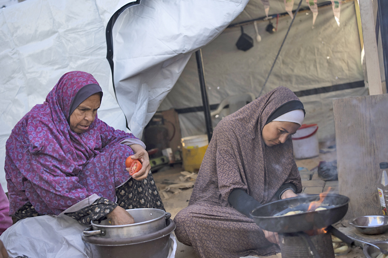 Kira-kira 80 peratus daripada 2.3 juta penduduk Gaza telah kehilangan tempat tinggal dalam peperangan tersebut, lebih separuh daripada mereka bersesak-sesak di bahagian selatan di sekitar bandar Rafah, kebanyakannya tinggal di dalam khemah, sekolah yang telah dijadikan tempat perlindungan.