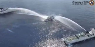 Pengawal pantai China tembak meriam air ke arah kapal Filipina lagi