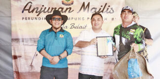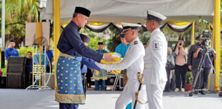 Upacara menaikkan bendera di Mukim Kuala Belait, Seria