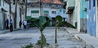 Gara-gara terlupa selenggara, pokok pisang tumbuh di jalan berlubang