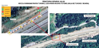 Separuh jalan di Kilometer 23.4 kawasan Pantai Tungku ditutup sementara