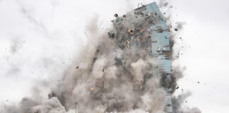 Bangunan pencakar langit rosak akibat taufan, dimusnahkan