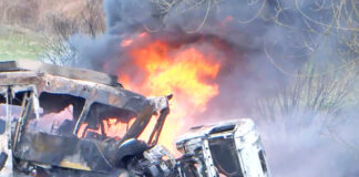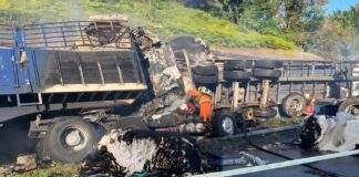 Dua beranak rentung treler dipandu bapa rempuh belakang treler muatan kapas