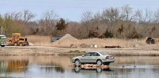 Volvo tersadai di tengah tasik jadi tarikan ramai