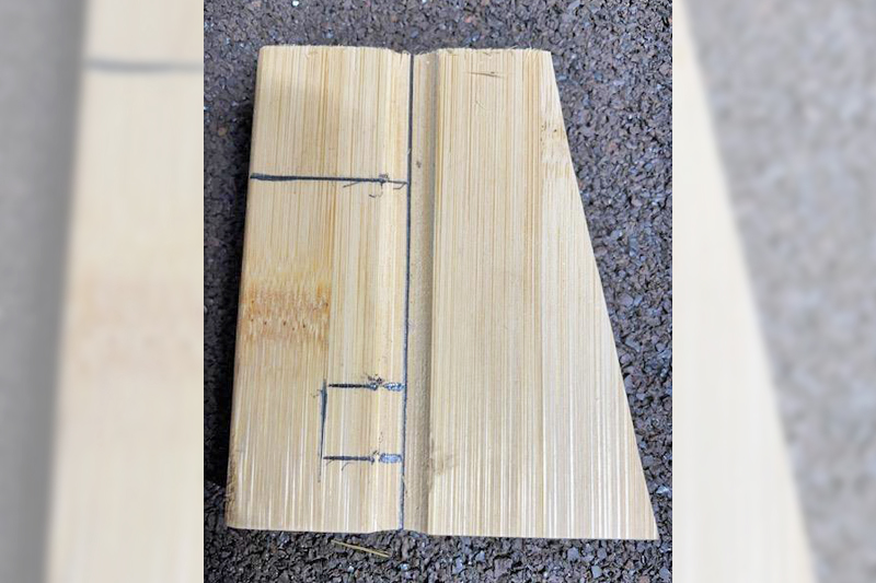 Potong bentuk yang telah dilakar menggunakan gergaji skrol. Bahagian atas takikan boleh dilaras dengan sedikit condong seperti dalam gambar untuk mendapatkan sudut yang selesa.