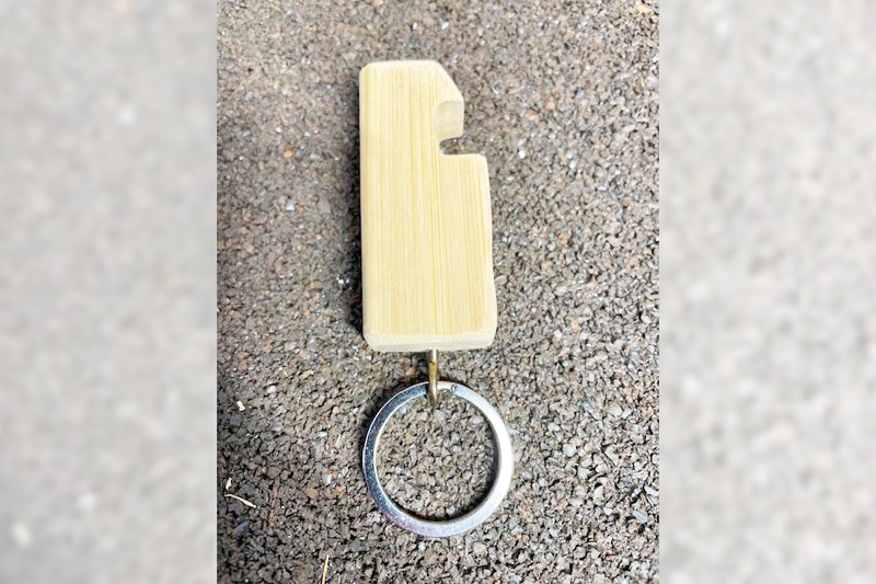 Hasilnya ialah alat kecil yang berguna, penyokong telefon bimbit mudah alih yang juga berfungsi sebagai gantungan kunci.