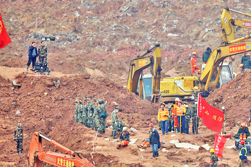 Seramai 14 orang terperangkap dalam kejadian kira-kira 8:30 pagi di Kampung Dayuan di Daerah Baiyun, dengan beberapa rumah turut rosak.