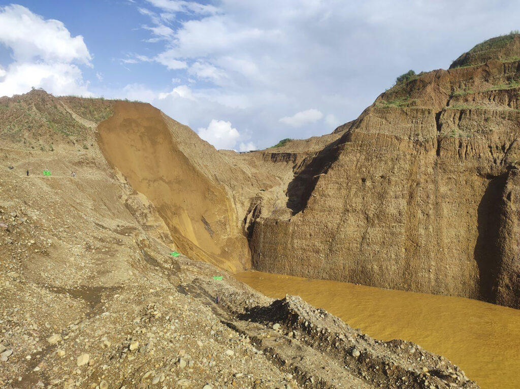 Tanah dan serpihan dari beberapa lombong berhampiran kampung itu merosot 304 meter (kira-kira 1,000 kaki) ke bawah tebing ke dalam tasik di bawah dan menimpa pelombong dalam perjalanan, katanya.