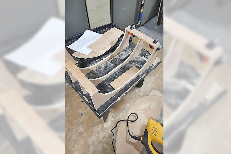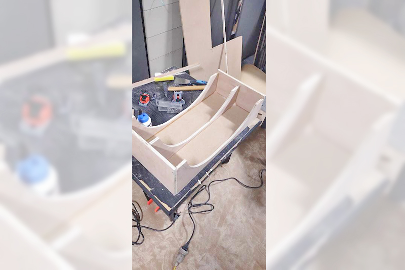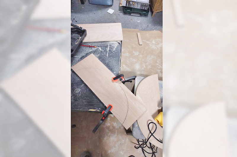 Berjaya melakarnya, potongkan kesemua bahagian yang menggunakan mesin circular terutamanya bahagian yang mempunyai sudut rata. Sementara bahagian yang melengkung akan dipotong menggunakan mesin jig. (gambar 4)