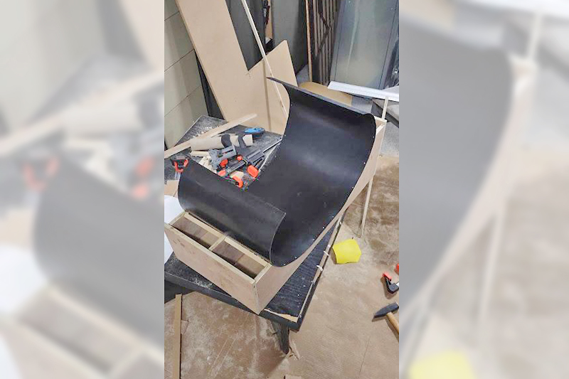 Paku rapat bahagian helaian plastik bagi memastikannya melengkung dengan sempurna mengikut permukaan dalam rangka rekaan.