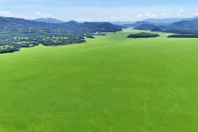 SUCHITOTO, EL SALVADOR – Perairan Tasik Suchitlan di El Salvador biasanya sibuk dengan nelayan dan pelancong tetapi pada tahun ini, awda tidak akan dipersalahkan kerana menganggap ia bukan tasik sama sekali.